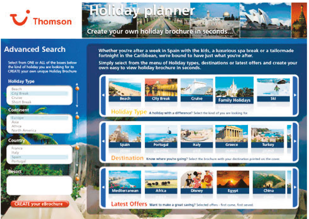 A sample of destinations, holidays and offers, so customers could, view and purchase their holidays remotely.